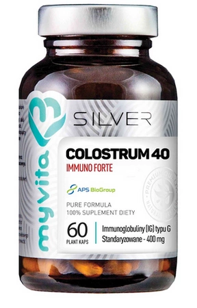 MyVita Silver Colostrum 40 standaryzowane na 30-40% immunoglobulin typu G (IgG) i 70% białka