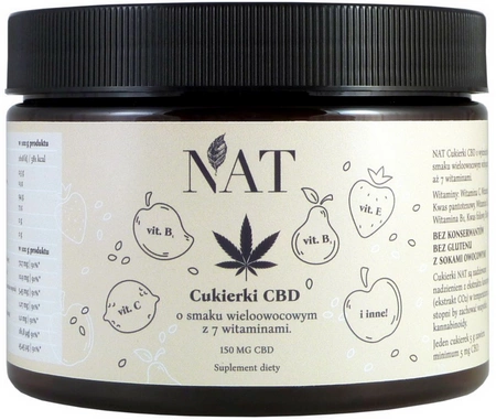 - NAT Cukierki CBD 150mg z 7 witaminami owocowe 150g