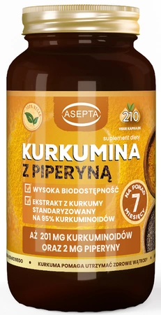 - ASEPTA Kurkumina z piperyną 210 kapsułek