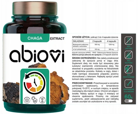 - Abiovi Chaga błyskoporek podkorowy ekstrakt 11:1 60 kapsułek