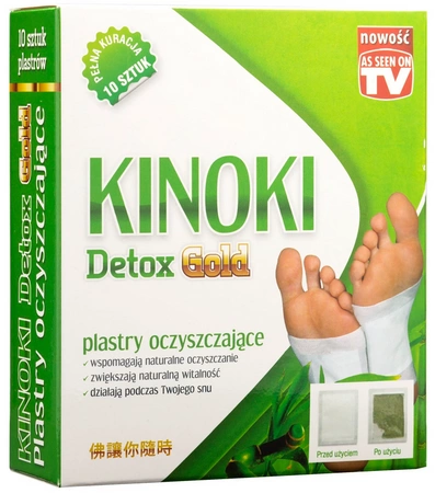 Jeśli używasz plastrów Kinoki Detox Gold po raz pierwszy, możesz nałożyć 2 sztuki na każdą stopę, a rano, przy zdejmowaniu plastrów, zwróć uwagę, na której części jest najwięcej osadu. Plastry Kinoki Detox Gold należy przykleić na noc na obie stopy. Najlepszy efekt uzyskamy trzymając je na stopach od 6 do 10 godzin. Pełna kuracja powinna trwać 10-20 dni, z uwzględnieniem indywidualnych uwarunkowań, tj. ilości toksyn znajdujących się w organizmie, którą widać po stopniu zabarwienia się plastrów na ciemny kolor. Wskazane jest kontynuowanie kuracji stosując okład raz na tydzień w celu osiągnięcia trwałego efektu dobrego samopoczucia.